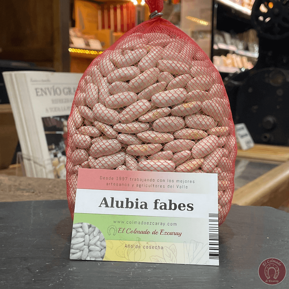 Alubia Fabes plantada y recolectada en por agricultores de la zona de manera tradicional. Considerada la variedad estrella en nuestra gastronomía. Cocinada presenta el grano entero y una piel muy suave, su sabor característico la hace ser la más cotizada y apreciada de todas las alubias.