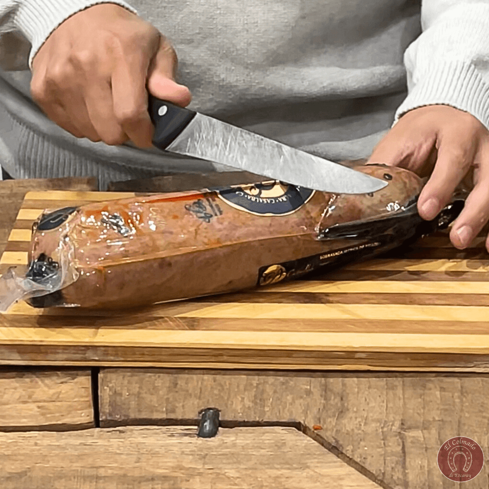 - Curación: Secada con brasero de leña de encina y 5-6 meses de curación en secadero natural.
