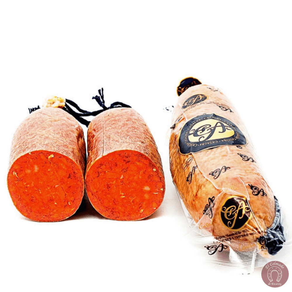 - Carne: Elaborada con magros, panceta y papada y ibéricos, y las proporciones justas de pimentón de distintas variedades (de la Vera extremeño y de Murcia).
