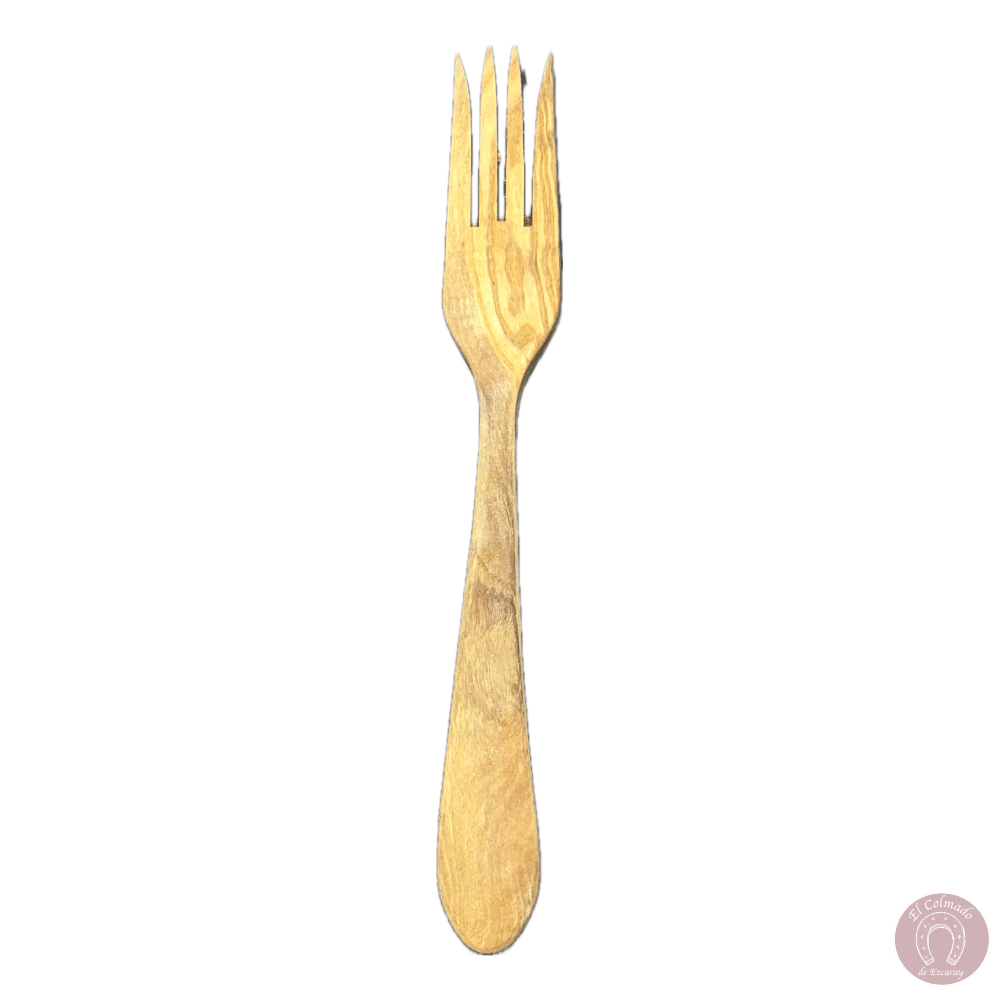 Tenedor grande de 28 cm de madera de olivo fabricada de forma artesanal en España. Este tenedor es especial para cocinar y tiene un tamaño ideal para cualquier tipo de sartén.